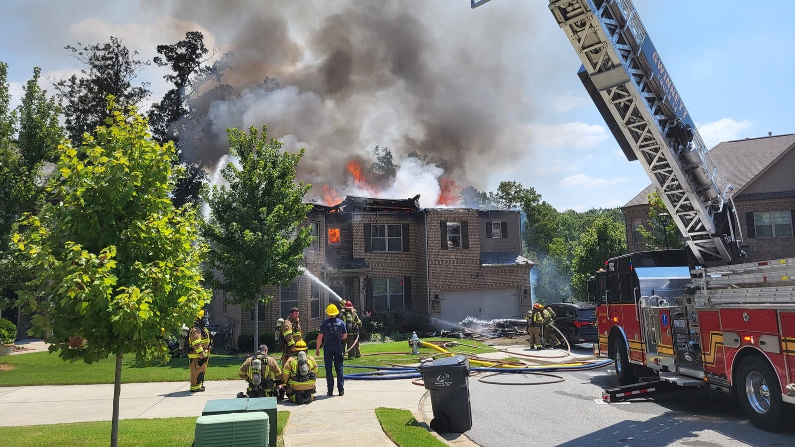 Gwinnett County Fire and Emergency Services took to their social media to express their gratefulness that no one was home at the time of the fire and for the kindness of neighbors.