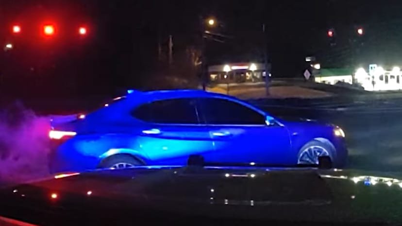 A Gwinnett County Police officer performs a pit maneuver on a wrong-way driver in Buford on Sunday, Jan. 12, 2025. Photo taken from body camera footage released by the Gwinnett County Police Department.